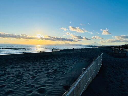 冬型の気圧配置になると湘南には西〜南西風が吹き、このオンショアの影響で葦簀(よしず)が隠れるくらい砂が浜に上がっているのが、よくある冬の光景。 湘南で養浜工事をやっていないエリアは、地形が決まらなくなっていることも多いため、小さくても綺麗な…